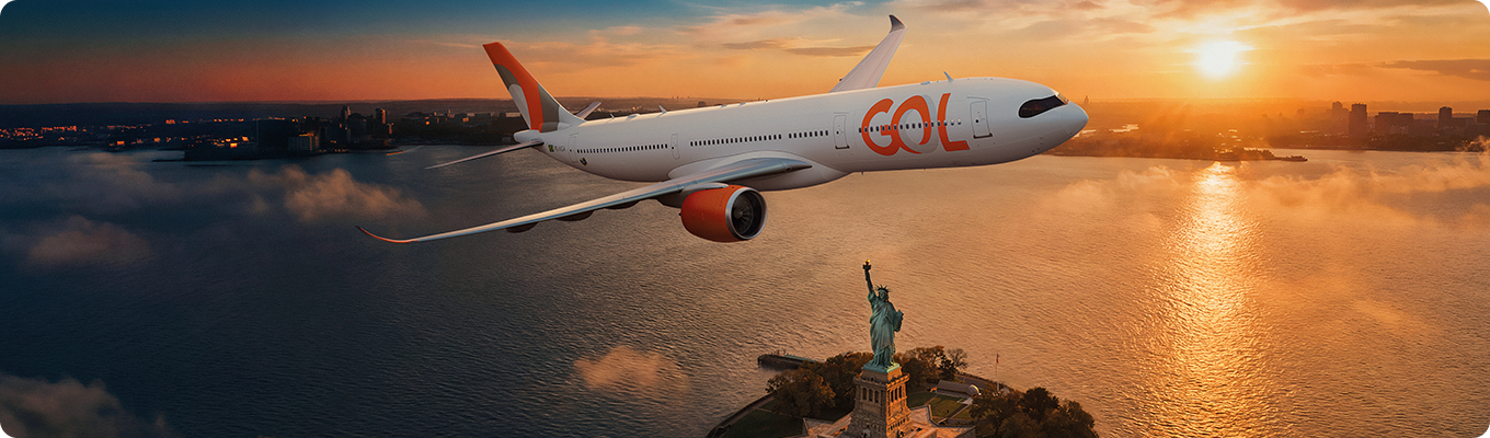 Para anunciar essa evolução na experiência que leva para A Grande Maçã, um dos maiores centros culturais e financeiros do mundo, apresentamos nossa nova aeronave de dois corredores com duas classes, projetada para atravessar oceanos em uma jornada confortável e acolhedora. Ela se junta aos nossos aviões atuais, que continuam operando normalmente, tornando nossa frota ainda mais completa e versátil.
